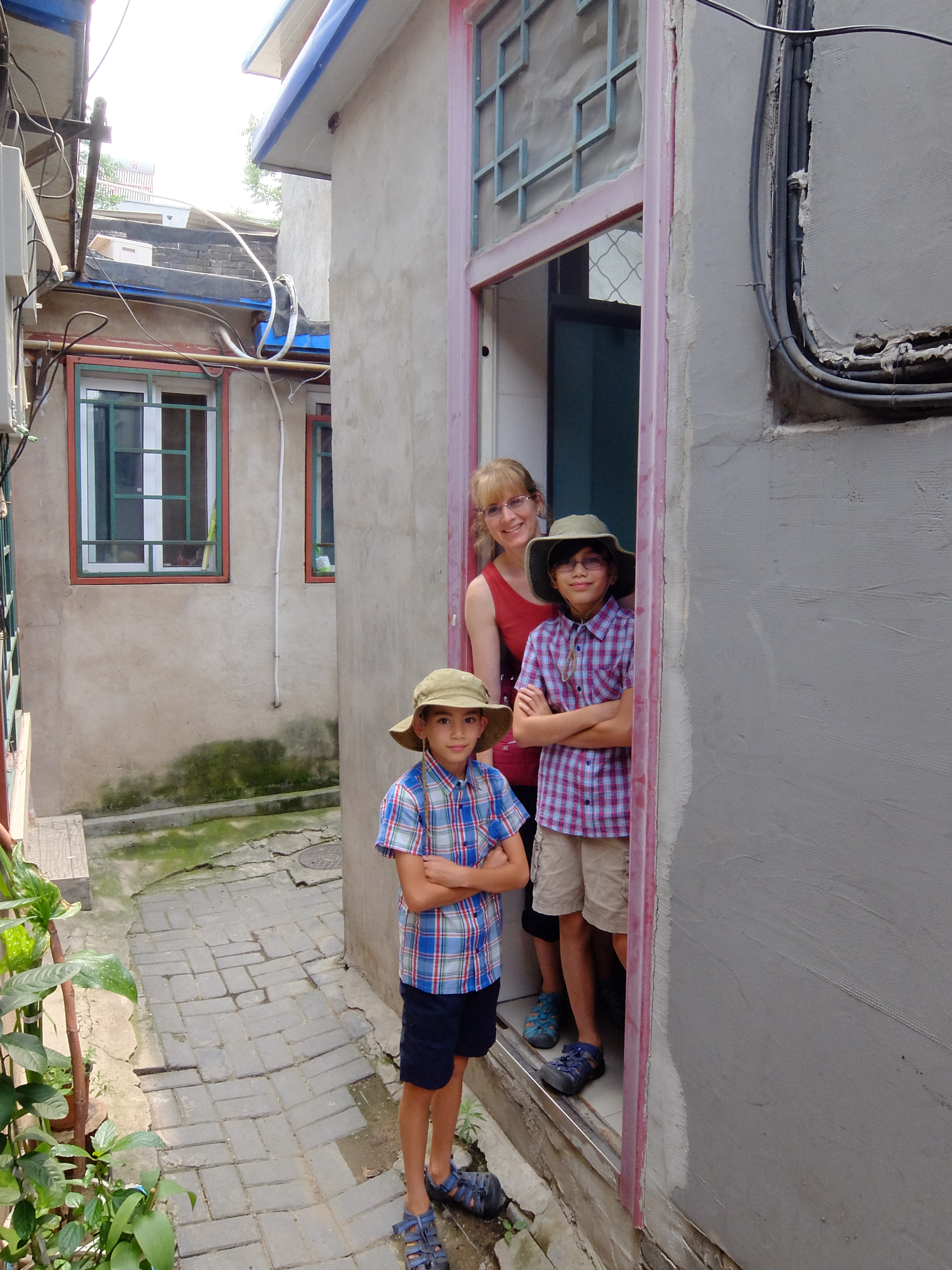 Anyway, the driver drops us off on some grotty street and points down an even grottier alleyway. All we have is the address of … Hutong. Hutong means “alley” in Chinese by the way. Barb just starts walking down the alleyway and since we don’t have SIM cards for our phones we couldn’t call our apartment contact. After about 15 minutes it’s apparent that we are just further and further into the bowels of this area and I see that Caleb’s face is registering some mild panic. He even suggested we head back to the spot where the taxi dropped us off. I start saying, “Ni-hao” to everyone who passes us and point to the address written on our piece of paper. They all look and it and shake their heads because it’s written in our English alphabet, not in Chinese characters. My panic level is starting to rise as well!