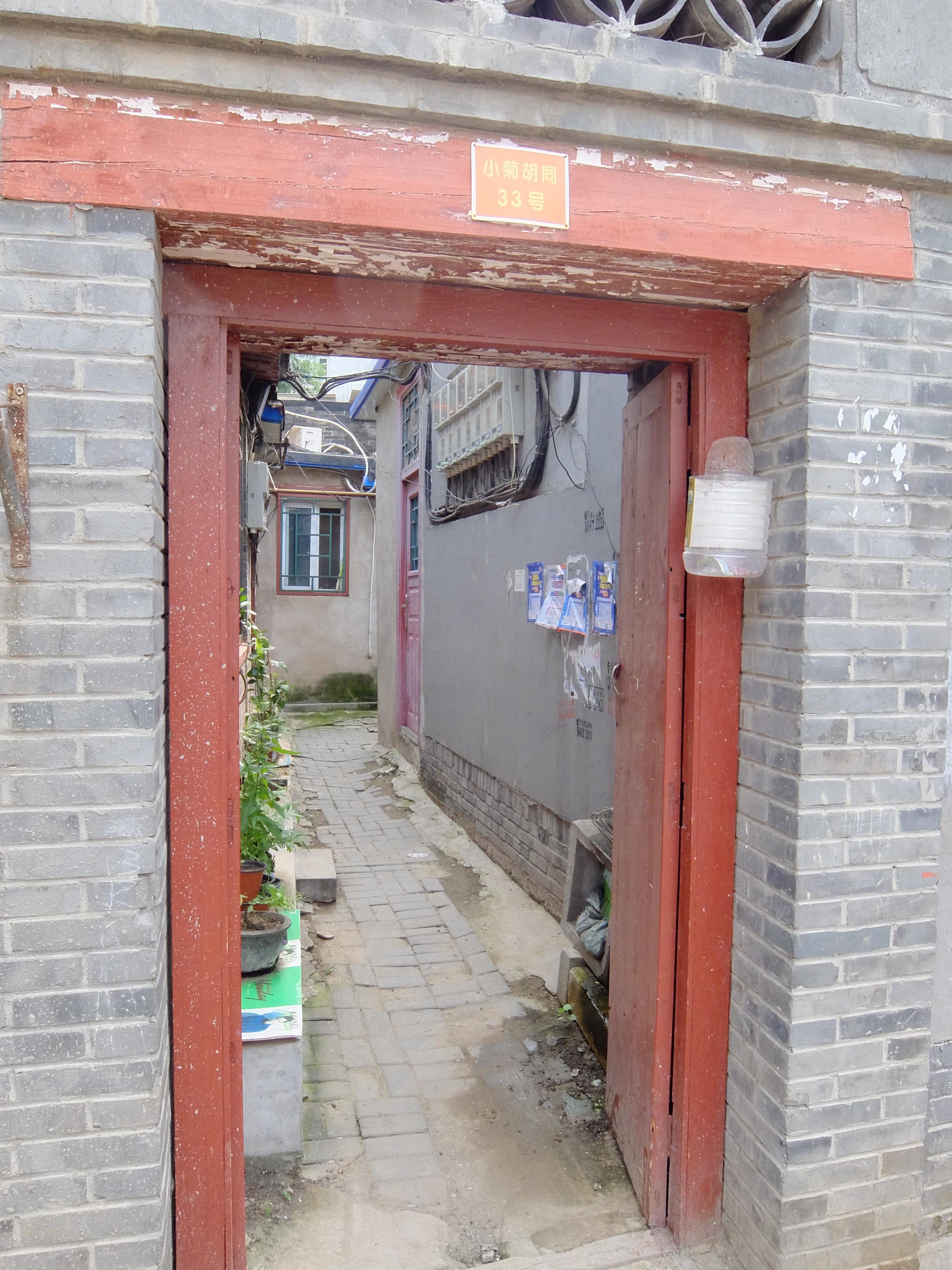 As we work our way back to our drop off spot Barb suggests we look for a store to buy a SIM card so we can call the apartment lady. I spot this hole in the wall store no bigger than the main floor bathroom in our house and try not to butcher the pronunciation of “Xiaoju Hutong” while pointing to the 33. The man seemed to understand and rattled off about 100 words of instructions on how to get there in Mandarin. My face must have looked panicked and I motioned him to follow me out to the street and I pointed in a vague direction with a questioning look on my face. He pointed down the grotty alley we had just come from but made a “veer to the right through that sketchy arch” hand motion (adjective mine). I smiled and said “shey shey” and headed in that direction with Barb and the boys in tow. We go through the arch and the alley veers right and we spot a number 26 so we keep going to find the 33. At one point we manage to find 32 and 34 but there is no 33! These three little girls sitting in the alleyway call out “Hi” and “Hello”. Obviously we are sticking out horrendously as tourists. I asked the girls where 33 was and they just laughed and shook their heads.