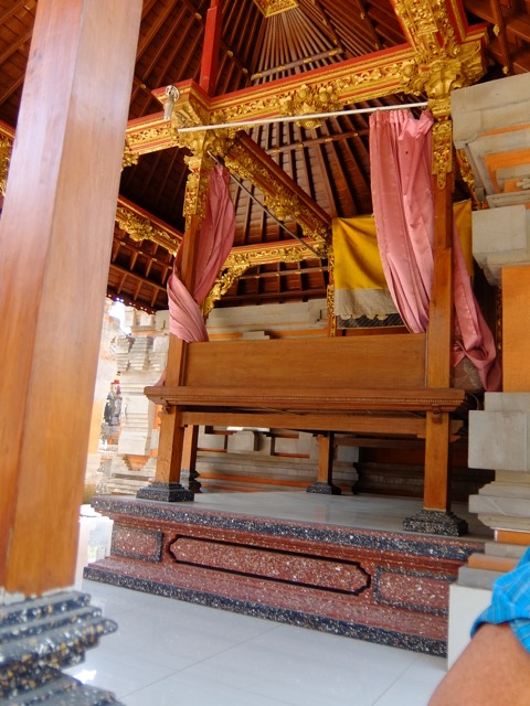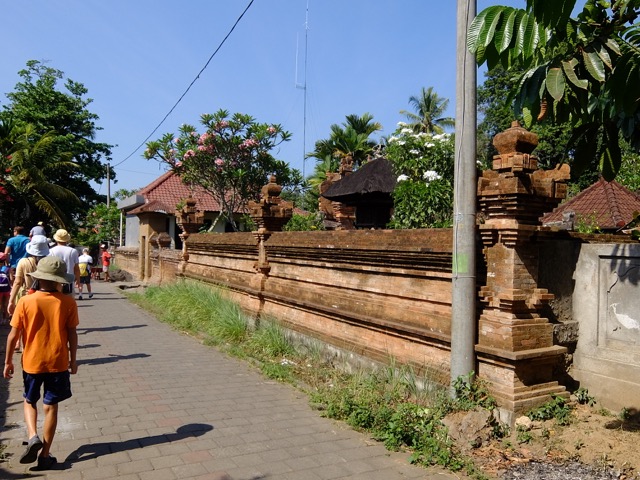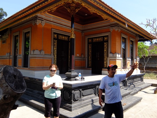 Our first activity was to take a 30 minute bus ride to a local Balinese village. We were met at the village by one of the locals who took us to his home. He explained to us the design that homes in Bali follow. It was really interesting. When you walk through the front gates into the “home” you will see several buildings. He compared to the design of the home to the parts of the body. Each home has a temple, which is situated at the north-east (or north-west if north-east is not possible). The senior members of the family (e.g. grandparents) have a room/home along the north. The younger generation have a room/home on the west. There is a separate room or home for the kitchen. And each home has a main, central open room with a bed for celebrations and special occasions. Any pets, cows, pigs, etc are on the west side behind the houses.