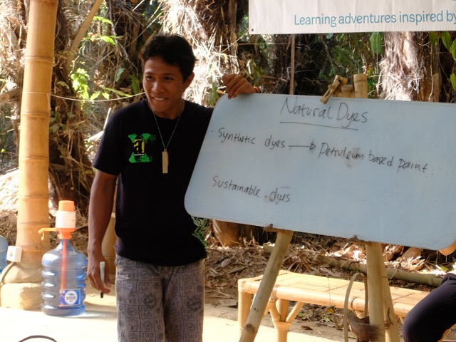 As soon as the yoga wrapped up, we had to head to the common area for natural dye making. Here the guides explained why and how natural dyes are made, and they set up stations so that the families could make their own dyes and use them to paint designs on cloth bags.