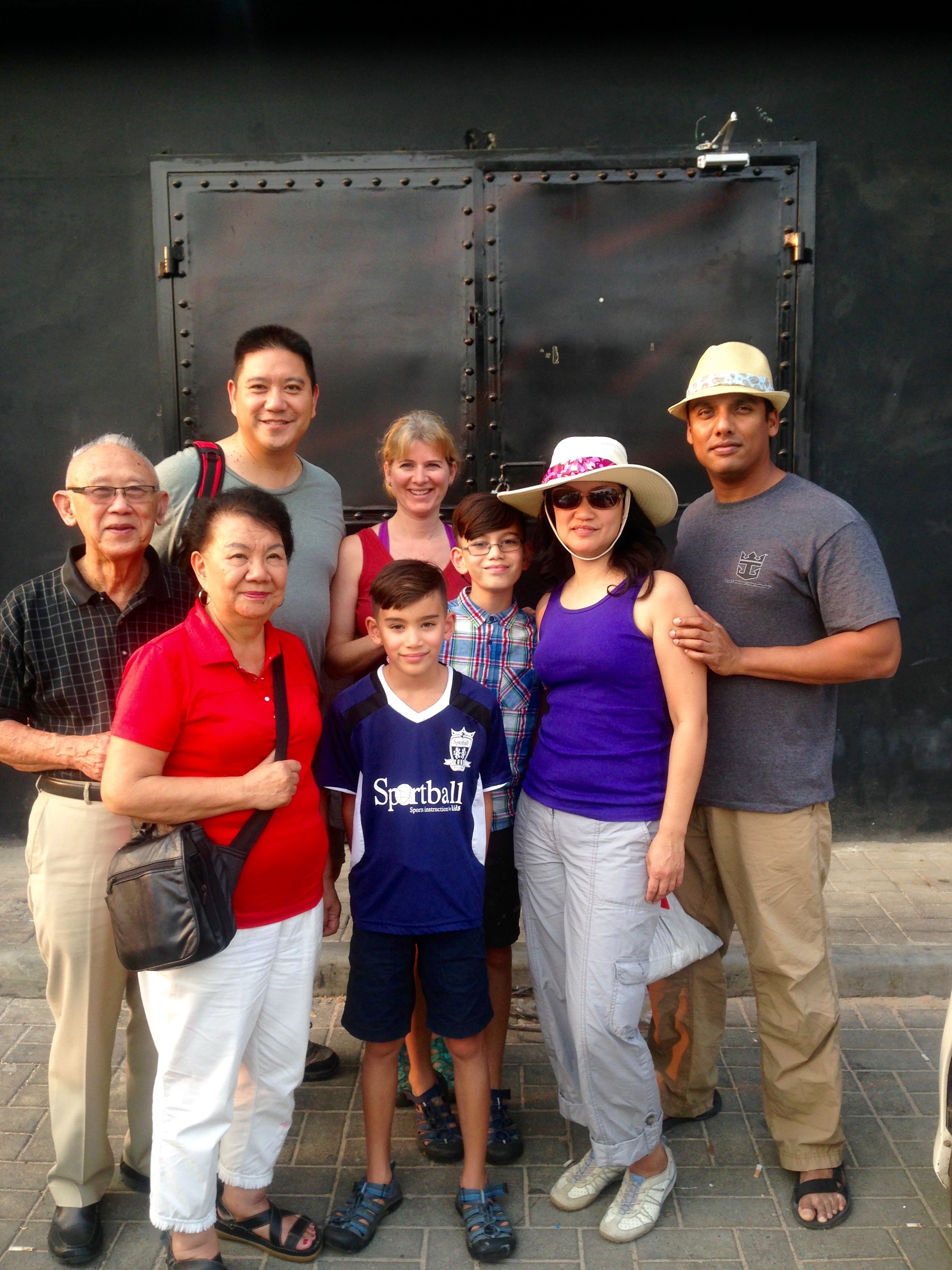 Our stay in Jakarta was short (4 days) and much of it was spent meeting up with the Indo side of the family for lunch or dinner or sometimes both and when they weren’t at work and finding interesting spots for the eight of us. One spot was called The Pandora Experience. Barb may have written earlier about us going to Escape Hunt in Bangkok where we were locked in a room and had to solve a mystery following various clues. The Pandora Experience was similar but much more intense because it had a Jack the Ripper theme to this particular episode. It also had multiple rooms on many levels that required us to climb, crawl, and duck in and out of in order to solve the complex riddles to escape. We’ve even thought about starting one up when we get back to Canada as the idea of devising clues and riddles has piqued the boys’ interest. Obviously I can’t show any pictures from the adventure as no cameras are allowed (not even mobile phones) so the adventure stays fresh and new for others but here’s a photo of us outside the facility which is basically a black, iron door. Yes, it looks sketchy but it’s really a bona fide business.