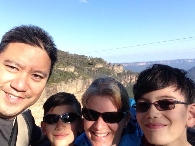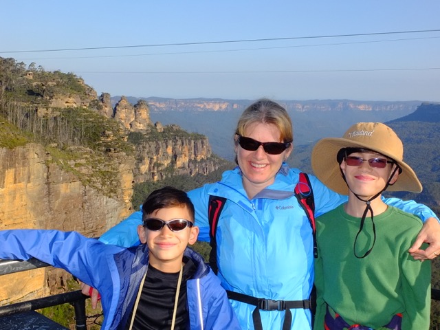 re lit up at night and you can walk down to see them. “It’s a beautiful walk,” he said. “No, mommy!” came the boys pleas, knowing how much I love hiking…..for hours and hours. But it did get me thinking….. “Well, why don’t we just go for a short hike through the mountains now, then?” I suggested. Off we went! The mountains and the rainforest are truly gorgeous and I could have walked around them all day but by this point it was about 5:30 pm, it was soon going to be dark, and we needed to eat something. So, we made our way up out of the ravine to the bus stop. Hmmm….apparently the last bus left at 5:00 pm. There were no more buses until the next morning! Hiking back to town was our only option and not really too bad (in my opinion!). It was only 4 ½ km but it was totally uphill for the last 3! Since the train only ran every hour at this point we had to make sure we got there on time. We finally pulled into the Holiday Inn at 10:00 p.m. and everyone slept well that night! Clay’s parents were super pleased that they had decided to ‘call it a day’ after Featherdale!