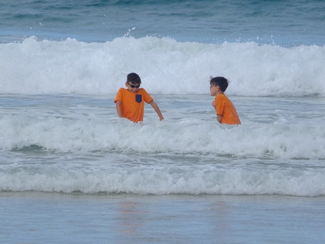 After lunch we caught a ferry out to Manley. It was a beautiful day but still a little cool. Once we arrived at Manley beach, however, the boys were quite keen to spend time jumping in and out of the waves. Clay and I enjoyed just sitting back and watching them!