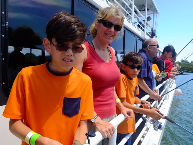 On the boat of catch a crab, we went fishing and I was very excited. Our guide told us to just take a fishing rod from the back of the boat and take the bait, which was shrimp. Of course there were lots of Korean and Chinese tourists! They just pushed their way to the back of the boat leaving Caleb and I behind.