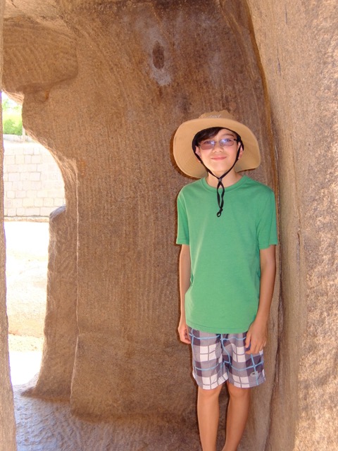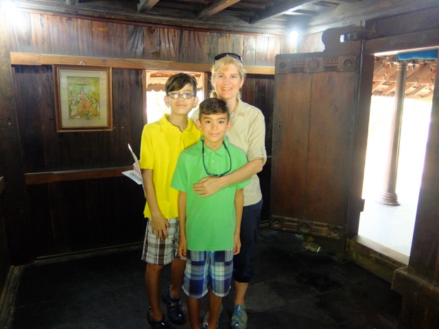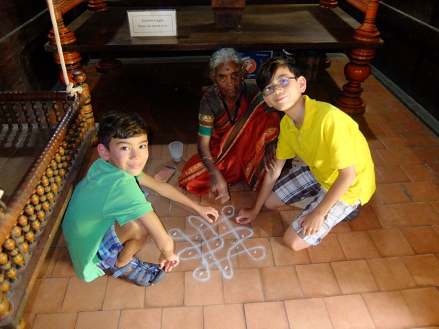 While it was tempting to just hang around the house relaxing the whole time, we did managDSCF1594e to fit in some sightseeing! We visited Dashina Chitra. Dakshina Chitra is a small village recreated using replicas of traditional South Indian houses dating back to the 19th and 20th centuries. Visitors get a peek into the lifestyle and cuDSCF1589stoms of different communities of South India and also view artifacts made by the local artisans. Unfortunately the mosquitoes at the place were fierce and kept us moving through at quite a clip! There were a few activities you could do, such as making a clay bowl, or building a puppet but no one spoke English so the boys were a bit intimidated with people jabbering at them and not being able to understand them! They did manage to make a clay bowl but the lady who kept asking for money when we took her picture put them off a little!