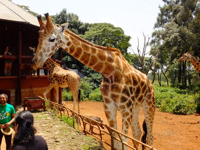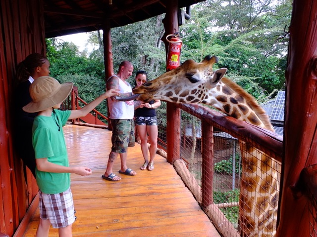 Well, my wish came true! We went to see the giraffe centre a few days after arriving in Kenya, which was quite interesting and informative. When we entered, we had to wash our hands; then we grabbed a handful of pellets and went up onto a platform. From there, we were able to feed the giraffes the pellets, semi-safely. I say “semi-safely” because there was a sign saying, “beware of head butts”. I did have a giraffe take a swing at me but I was able to duck before ending up lifeless on the floor.