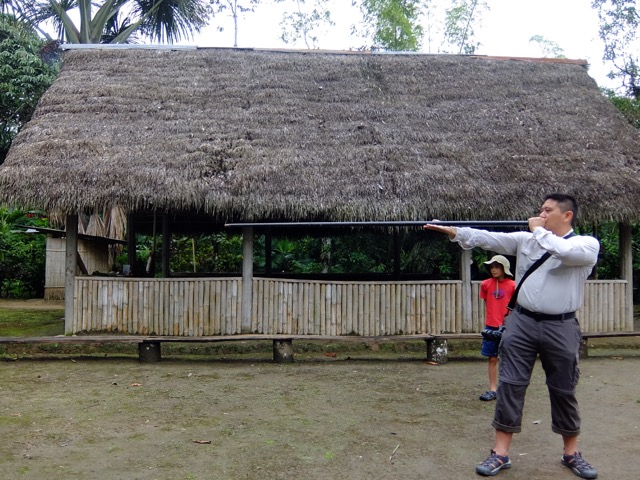 DSCF3923 Published June 19, 2016 at 640 × 480 in Amazon, Ecuador: Day Tour – by Caleb ← Previous Next → Trying the blowgun.
