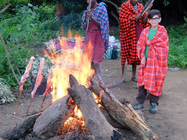 Upon arriving at the Maasai camp they dressed us in traditional “blankets” and asked us to join in a welcome dance. I’m sure if I spoke the language the dance would have been more interesting, but for me, it seemed all we were doing was dancing in circles, and shouting a lot!