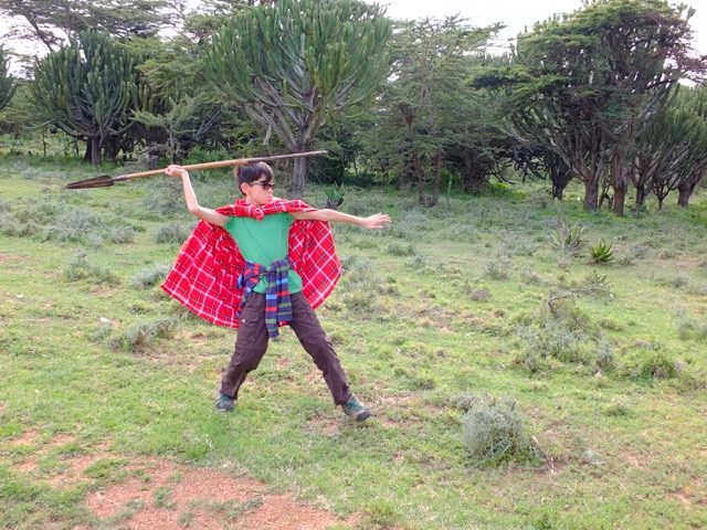 So, as you can see, the schedule can be stretched a bit, but after you rest, you’ve got to get a move on! Thankfully, they took it easy on us and we did a hike that was a fair distance but not too bad. Qweyla grabbed his spear, because we are in the wild and there is always the chance of being attacked by a lion. Mary, another one of the Maasai working at the camp, came along with us.